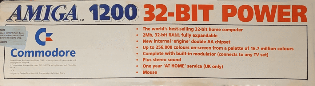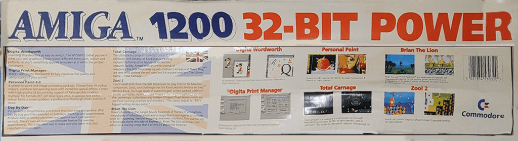 What came in the Box: A1200 Computer, Workbench 3.0 (6 Disks), Zool 2, Brian the Lion, Total Carrniage, Wordworth v2, Day by Day Planner, Personal Paint 4 AGA